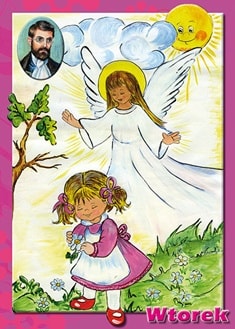 … mają także jeszcze trwać wesołe zabawy, ale już opowiadania o różnych rzeczach, które dzieci widzą, tłumaczenie obrazków, uczenie się wierszyków, i zabawianie się robótkami, ma do poważniejszych zatrudnień zaprawiać. Ponieważ zaś wtorek, przeznaczony jest nabożeństwu do Aniołów Stróżów, przeto mają dzieci w tym dniu śpiewać pieśń nabożną o Aniołach Stróżach, i tegoż dnia ma się wybierać pomiędzy dziećmi najgrzeczniejsze na dozorców nad drugimi na cały tydzień. A takie dzieci będą się nazywać aniołkami, i każde z nich będzie miało pod dozorem troje dzieci, i za ich sprawowanie się będzie odpowiedzialne. W tym dniu nauczyciel przypomina dzieciom Aniołów Stróżów, zwraca uwagę na ich rolę i zadania, jakie mają szczególnie wobec dzieci oraz potrzebę naśladowania ich w życiu każdego człowieka. Wybiera dzieci pełniące rolę Aniołów Stróżów. Mobilizuje ich do takich zachowań, które byłyby wzorem dla innych. Bł. Edmund zaleca w tym dniu równowagę między zabawą a nauką zwracając uwagę na konieczność liczenia się z potrzebami dzieci, rytmem życia i potrzebą stopniowania zajęć, przechodzenia do kolejnych czynności tak, by dydaktyka nie dominowała nad zabawą, ale z niej wynikała we właściwych proporcjach służąc wychowaniu.