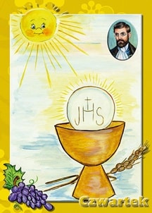 … jako wesoły dzień przeznaczony pamiątce ustanowieniu Najświętszego Sakramentu, dzieci mogą się znowu cieszyć zabawami. W czasie nauki, przypominane im będzie życie Pana Jezusa, a szczególniej Ostatnia Wieczerza i umywanie nóg Apostołom. Pieśni śpiewać będą o Najświętszym Sakramencie (…). Przy podwieczorku, jeśli dzieci chleb sobie przynoszą niech się między sobą na znak miłości łamią tym chlebem, choć po odrobince. Które mogą w tym dniu za uproszeniem rodziców, przyniosą do ochronki choć najmniejszą dla ubogich jałmużnę, latem jaki owoc, zimą kawałek chleba, albo parę kartofli; a zamówiwszy ubogiego, aby w tym dniu odwiedził ochronkę, niech mu dziatki jałmużnę złożą. Dzień, w którym wspominamy pamiątkę ustanowienia Najświętszego Sakramentu jest przeżywany bardziej podniośle, dlatego przeważają wesołe zabawy. Nauczyciel podczas porannej modlitwy czyta dzieciom krótkie fragmenty Ewangelii opisujące to ważne wydarzenie.